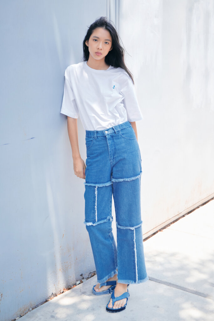 Quilted oversized jacket with asymmetrical seams.