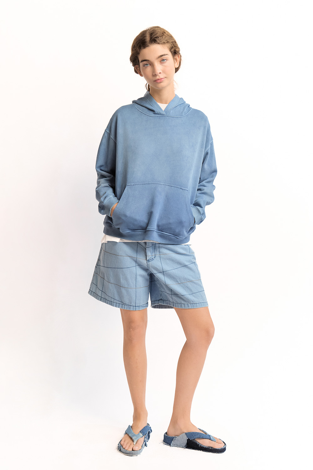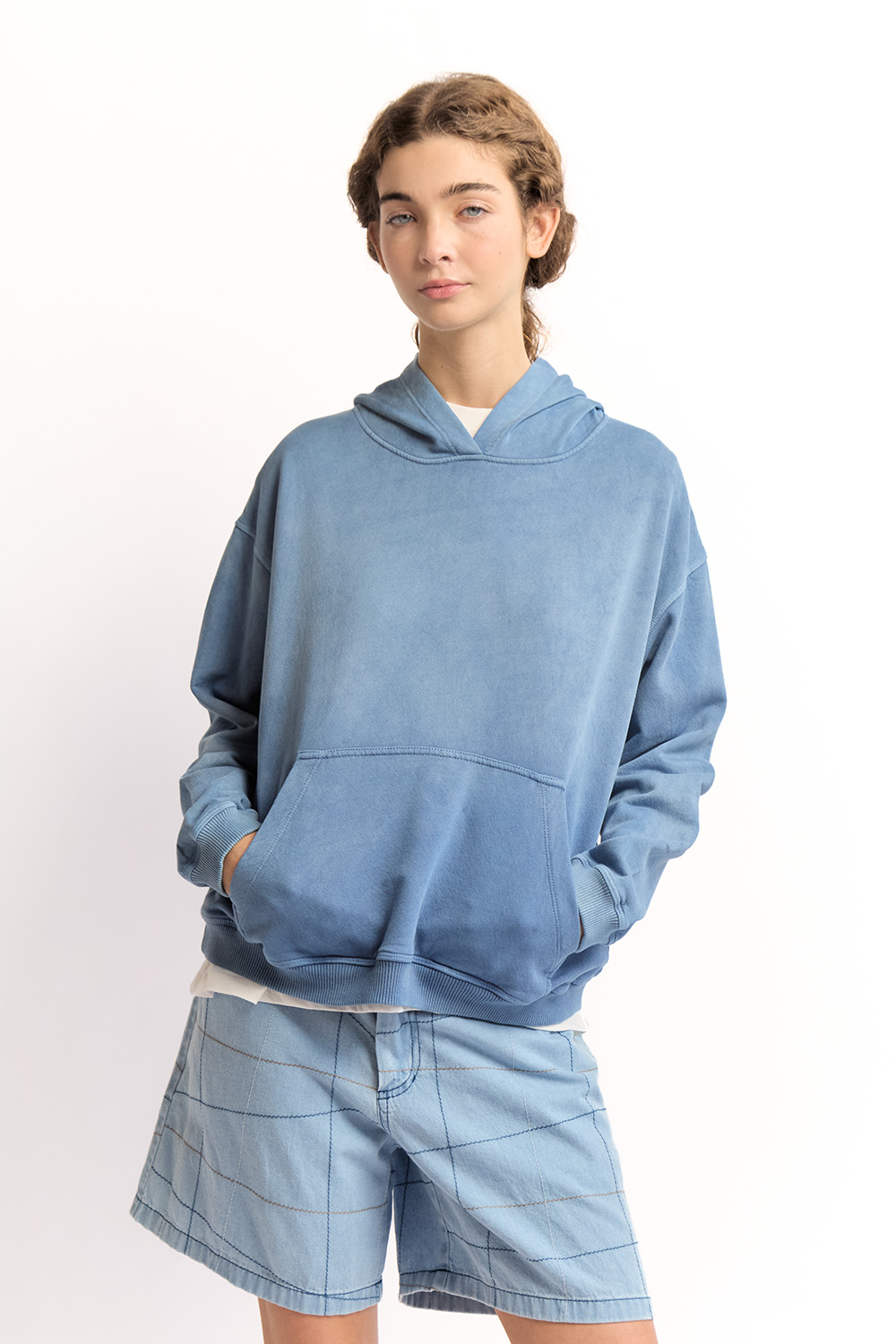 Hoodie de manga larga, teñido naturalmente con índigo. Hecho con algodón orgánico, tiene un acabado suave. Fit relajado.