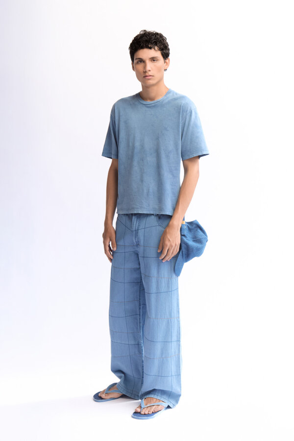 Polo unisex y oversize, teñido naturalmente con índigo. Tiene un pequeño detalle del logo en la parte de adelante.