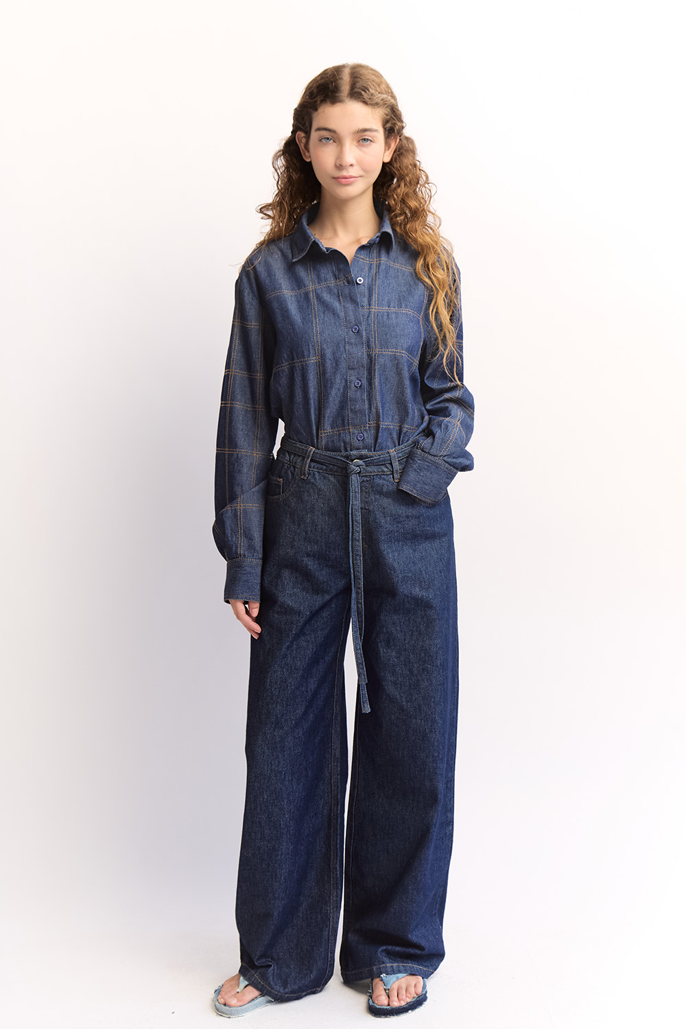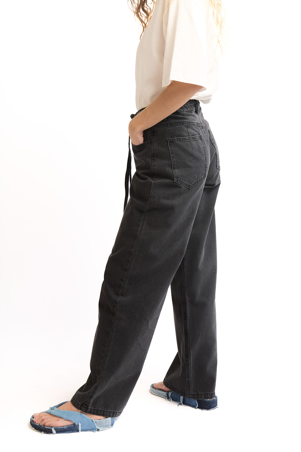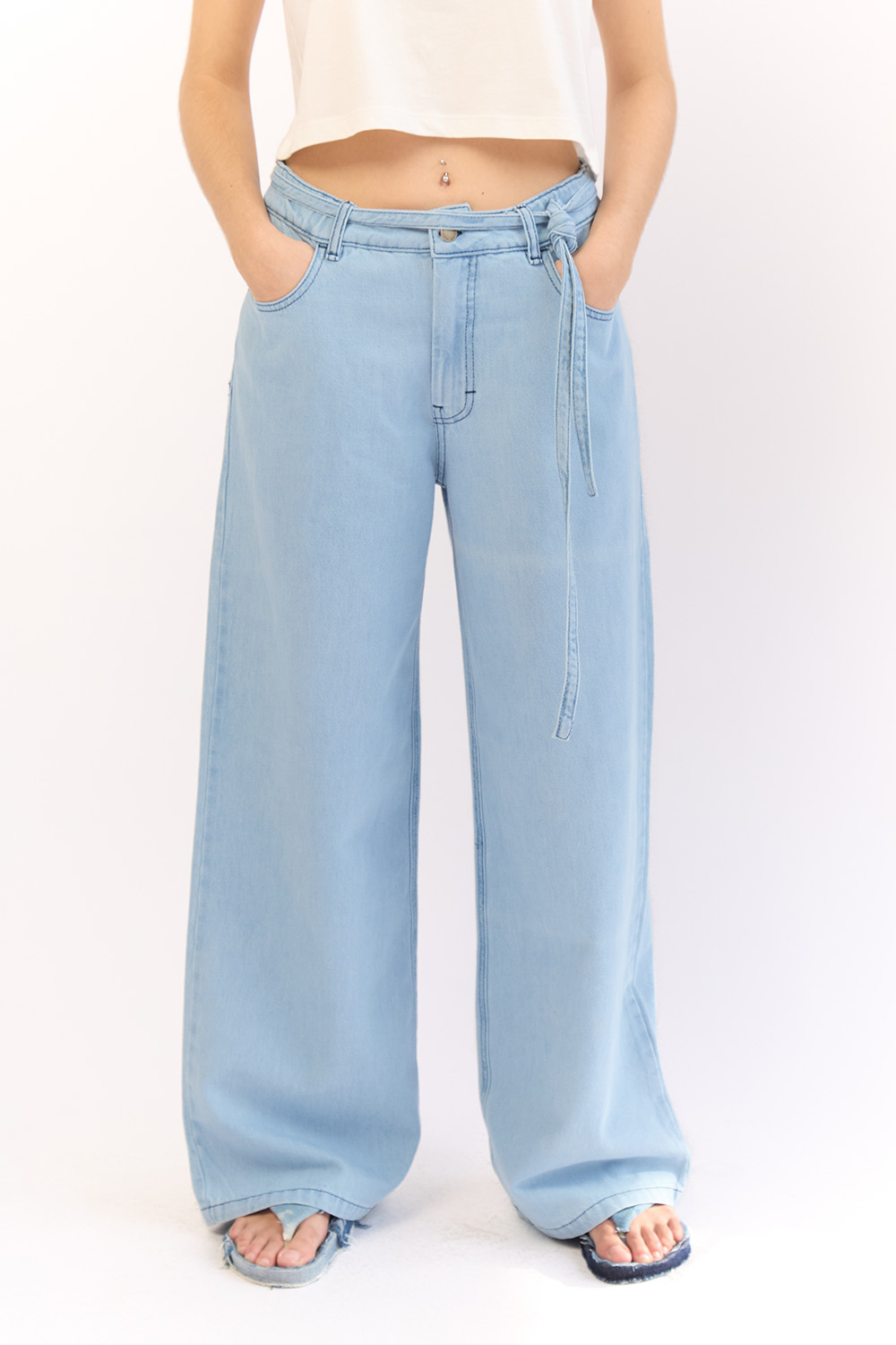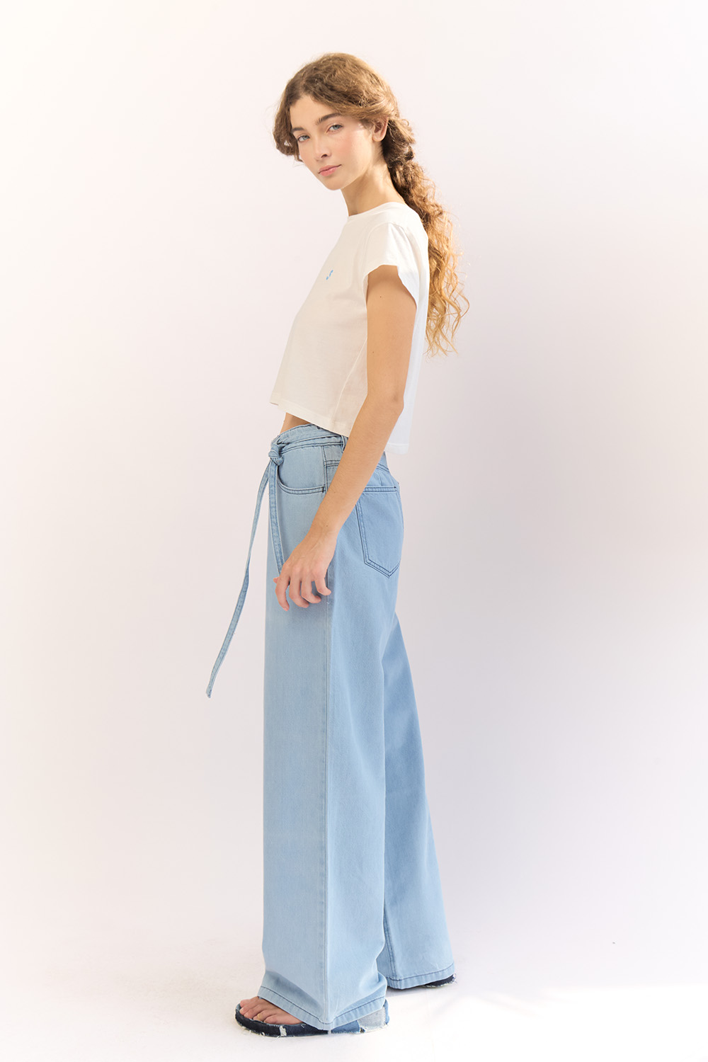Mid-rise waist wide-leg jeans. Long lenght.