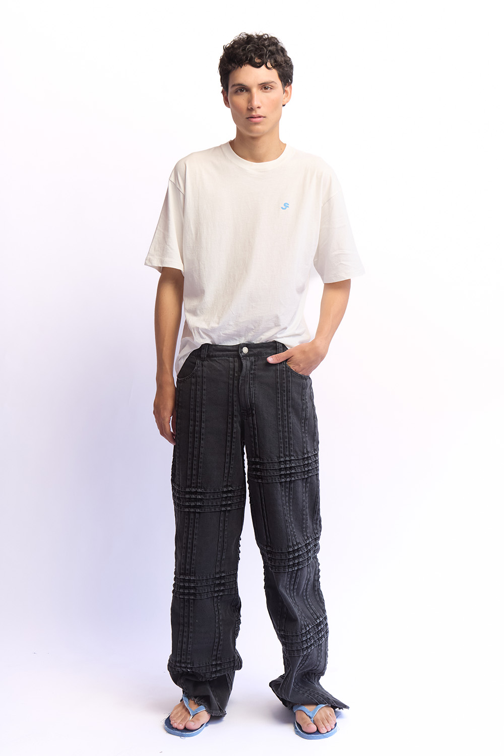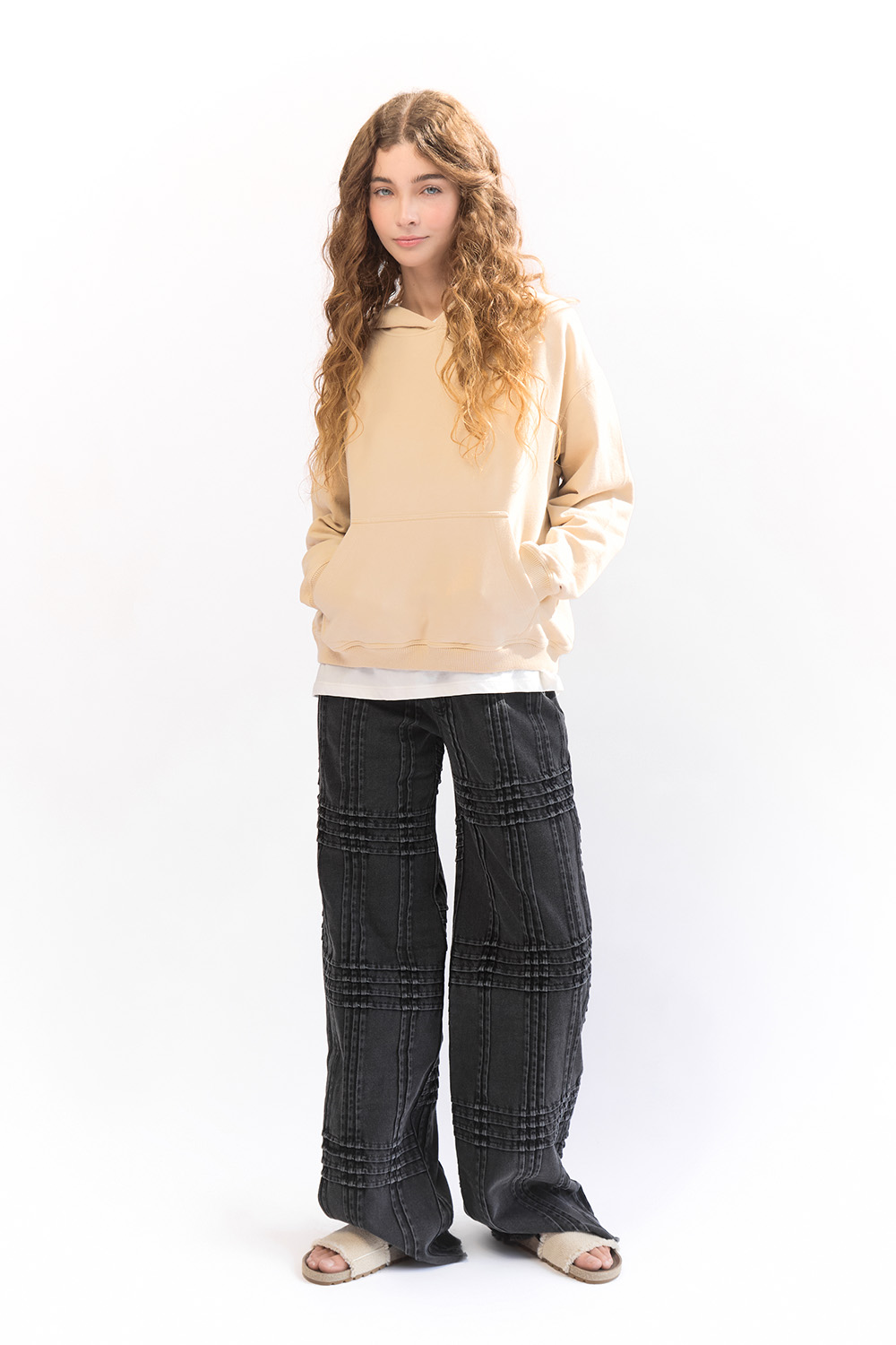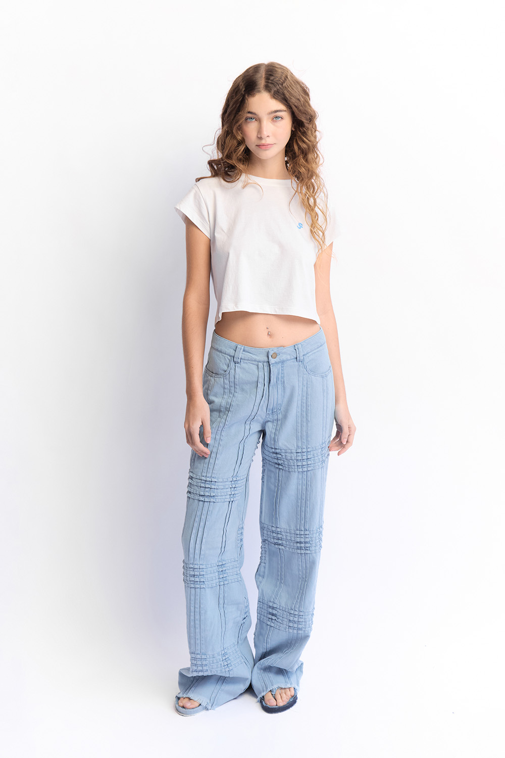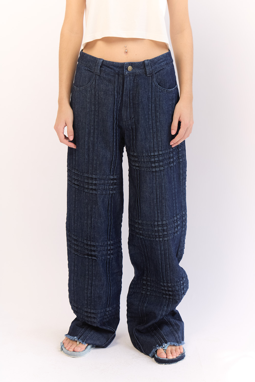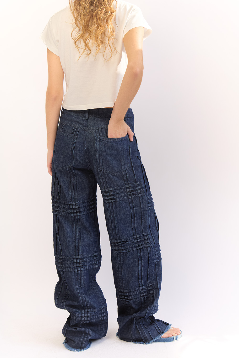 Mid-rise waist wide-leg pleated jeans. Long lenght.